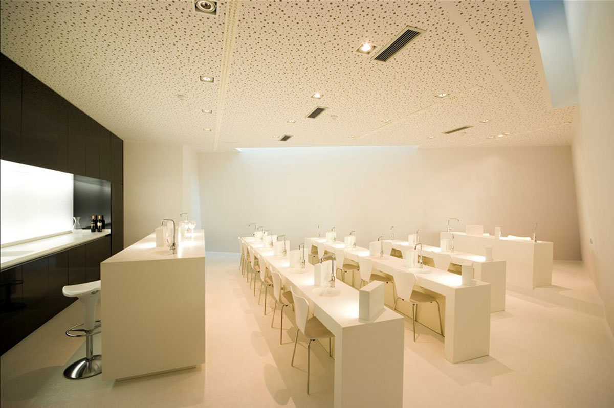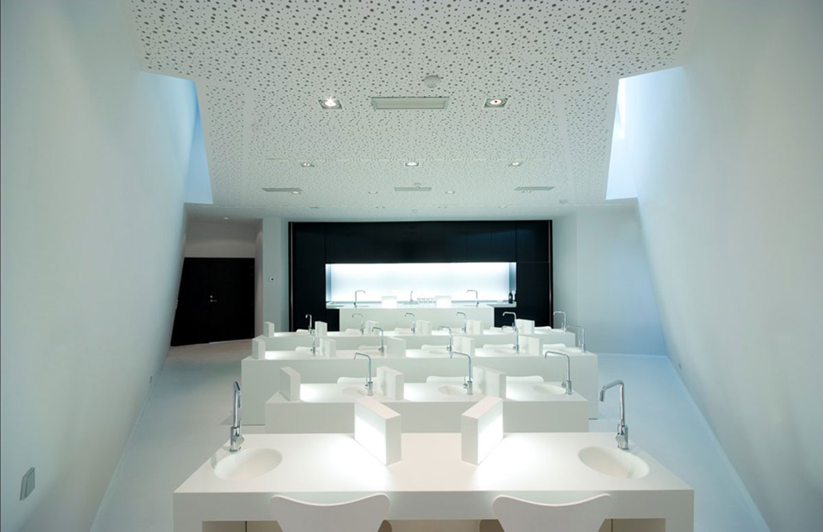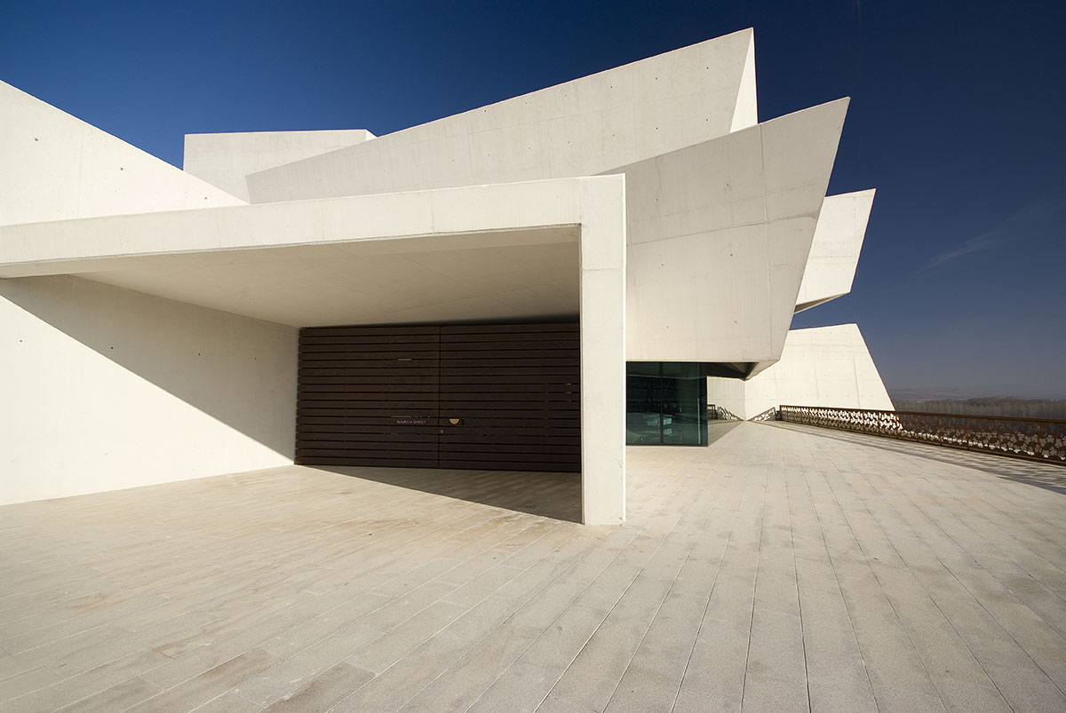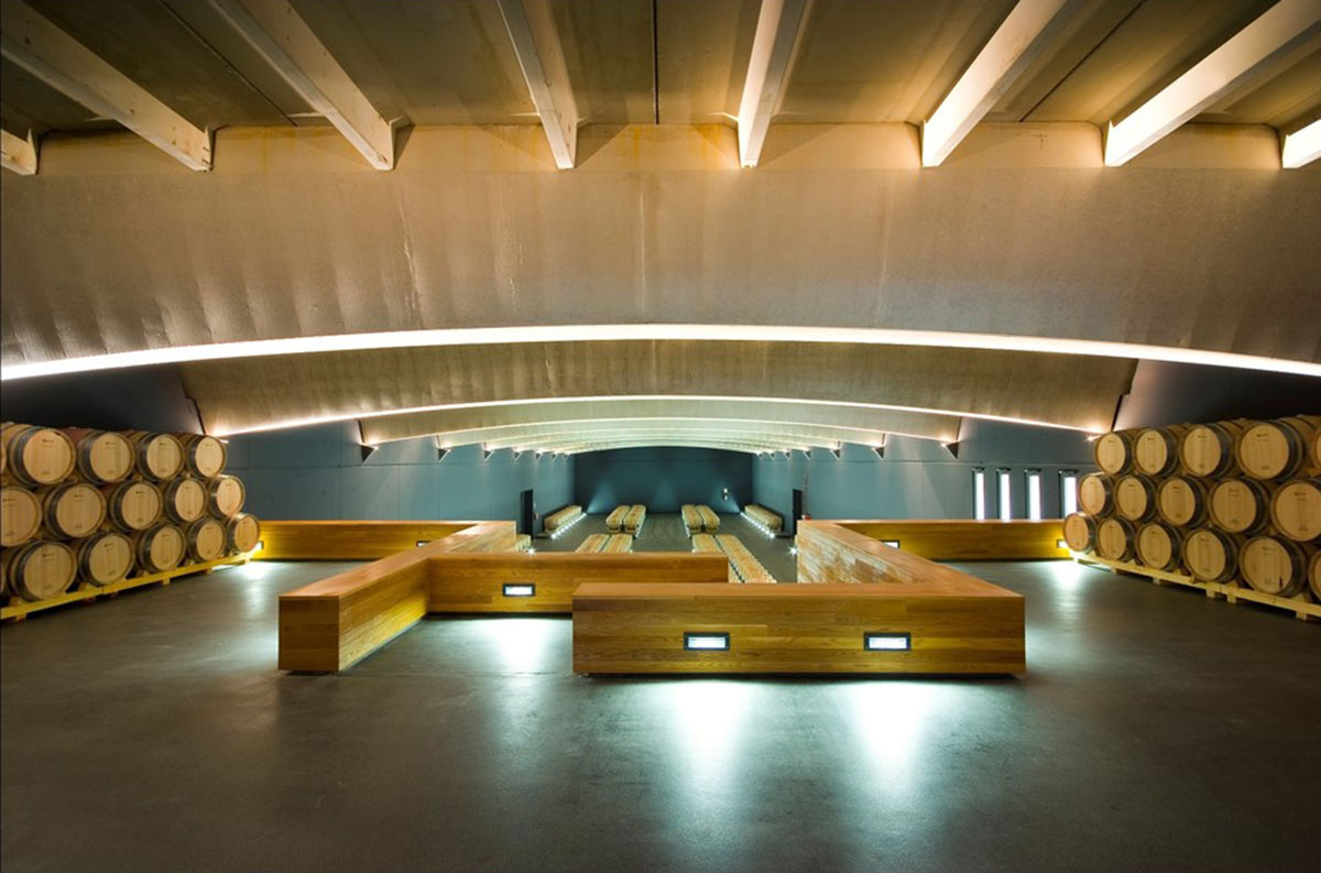 El objetivo del diseño es integrar la obra con el paisaje, difuminando los límites. El edificio no pretende un mimetismo sino una alusión a la geografía del lugar. Como los peñascos que abundan en los ribazos entre viñas de la Rioja, así la bodega surge entre las viñas, blanca, limpia y estimulante.